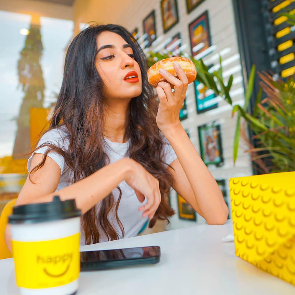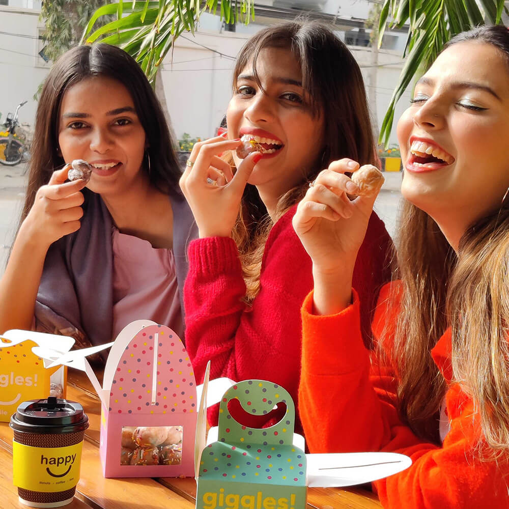 a passion project between aaliya safdar and hassaan warsi, happy was inspired by a greater purpose – to spread smiles in karachi. using only the highest quality ingredients and made with utmost love and hygiene, happy is a testament to what we can achieve by creating a community of customers. what started off as a preppy, minimal kiosk at karachi eat 2020 has quickly evolved into a city-wide brand – and whether it’s our donuts, our savory range, or other baked goodies – you can be assured if it’s happy, it’s gotta be good!